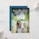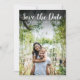 Este cartão de salva a data com foto de roteiro moderno apresenta sua foto especial sobreposta com uma data de "salva a data" de roteiro acima dos seus nomes, data e local em texto branco.