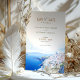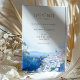 Anuncie o seu casamento com este cartão de "Salve a Data" de na moda com uma imagem impressionante de Santorini, Grécia. O cartão apresenta uma mistura harmoniosa de tons pastéis, incluindo azul-oceano, branco-pristina, lavanda macia e bege quente. O detalhado trabalho de arte de aquarela capta a essência da arquitetura icônica de Santorini e da impressionante linha de costa, evocando o romance e a anderrocada. Perfeito para casais planejando um casamento de destino, este cartão deliciosamente estabelece a palco para sua celebração especial. Personalize com seus detalhes de casamento para uma primeira impressão inesquecível.