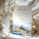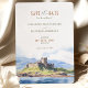Anuncie o seu casamento com este famoso cartão de "Salve a Data", com uma representação cativante das Terras Altas Escocesas. O cartão apresenta uma bela mistura de matizes pastéis macios, incluindo azul-céu, verde-esbranquiçado e bege quente. O detalhado trabalho de arte de aquarela captura a grandeza de um castelo histórico escocês aninhado entre colinas rolantes e um lago sereno, evocando um senso de romance e elegância eterno. Perfeito para casais planejando um casamento de destino, este cartão define o tom para uma celebração inesquecível. Personalize com seus detalhes de casamento para uma primeira impressão memorável.