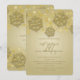 Modelo de convite "Salvar a data do casamento de Natal em ouro" moderno e elegante, com flocos de neve e luzes brilhantes em dourado sobre fundo preto.