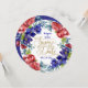 Arranjo floral aquoso de flores azuis/púrpuras profundas complementado com flores vermelhas. Salve a Data em um guião de ouro caprichoso com corações desenhados à mão. Data, nomes e outras informações são personalizáveis.