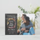 Esta foto de boho salve o cartão de data apresenta suas luzes especiais sobre fotos e cordas em um boião de mason bonito que contém a mensagem save the date acima de seus nomes, data e local em um fundo de quadro. Projetado por Thisnotme©