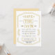 Modelo de design de luxo para salvar a data em estilo art deco com uma moldura em fundo branco.