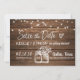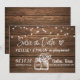 Este design apresenta um fundo de madeira rústica com luzes de corda penduradas e potes de pedra vintage e flores. Personalize isso para qualquer ocasião, mas ótimo para salvar a data de um próximo casamento no campo!