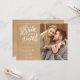 Este cartão de salvar a data com foto em script à mão rústico apresenta sua foto e um script salvar a data acima dos seus nomes, data e local. O verso tem detalhes adicionais para salvar a data, incluindo o site do seu casamento em um fundo kraft rústico. Criado por Thisisnotme©