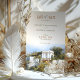 Anuncie seu casamento de destino em estilo de eterno com esta elegante Costa Amalfi salve o cartão de data com uma ilustração aquática de Villa Astor empoleirada sobre o mar. A cena romântica costeira é aliada a uma tipografia refinada para um equilíbrio perfeito de charme e sofisticação. Ideal para casais planejando uma celebração de casamento italiana, este cartão dá o tom para um evento luxuoso em um dos locais mais icônicos da Itália. Totalmente personalizável com seus nomes e data de casamento.