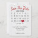 "Salve o calendário" com coração vermelho no fundo de madeira de celeiro batida rustica para o próximo casamento. O texto é editável. O mês pode ser mudado. Coloque o coração vermelho na data do seu casamento.