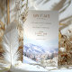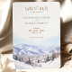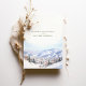 Anuncie o seu casamento com o cartão "Salve a Data" de destino da maravilha do inverno, apresentando uma impressionante representação de Park City, Utah. O cartão apresenta uma bela mistura de matizes macios, incluindo azul gelado, branco nevado e bege quente. O detalhado trabalho de arte de aquarela captura a essência das montanhas pitorescas da cidade de Park, uma vila encantadora e paisagem coberta de neve, evocando uma sensação de romance e elegância de inverno. Ideal para casais planejando um casamento de destino, este cartão define um tom mágico e convidativo para seu dia especial. Personalize com seus detalhes de casamento para criar uma primeira impressão inesquecível.