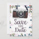 Salve a Data Câmera Vintage - Convite de noivado com um recife floral.