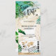 Ilha Tropical Destino Praia Casamento Embaraçando Bilhete de Passagem Dourado Salve a Data com ícone cardíaco e plano com folhas tropicais