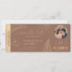 Bilhete Dourado de Passagem de Praia de Destino Salve a Data com ícone de coração e de avião com folhas tropicais. Adicione sua foto. Cor de fundo do mousse Mocha