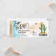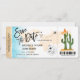 Destino Cancún, México Bilhete de Passagem de Embarque Dourado Avião Salve a Data com ícone de avião e coração com Cactos