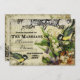 PALETA DE CORES: amarelo, bege, creme, laranja, verde e preto. DESIGN: Este conjunto de convites de casamento inspirados em tipografia vintage antiga tem um conjunto completo de produtos e foi criado em várias paletas de cores. Usando ornamentos decorativos de impressora vintage da era barroca vitoriana, misturados com arte floral de cartão-postal, incluindo lírio-do-vale, violetas inglesas, rosas e flores de boca-de-leão. Um par de pássaros cantores amarelos com uma gaiola de pássaros aberta completa a frente do convite. O verso inclui seu texto, que é facilmente personalizado usando os campos de modelo para personalização. Há mais desenhos de floreios espiralados, trabalho de linha espiralada, bordas envelhecidas e desgastadas e a gaiola de pássaros e rosas. Esta é uma mistura de elementos de design vintage e fundos de aquarela originais graficamente projet
