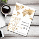 Planejando o casamento num destino romântico? Convide os seus convidados com este belo convite com mapa mundial dourado e o seu destino personalizado marcado com o coração móvel.