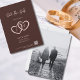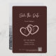 Salve os Corações de Data 2 Interligados com Iniciais Convite para fazer uma declaração simples, mas elegante. Esse cartão de anúncio minimalista, nas cores Dark Sienna e Light Dust Storm, apresenta um design de dois corações, cada um segurando uma das iniciais da noiva e uma das iniciais do noivo, com um centro sobreposto com um sinal de mais. O cartão contém informações essenciais, como a data do casamento, a localização, um código QR para mais detalhes e o endereço do site. O verso mostra uma imagem do casal a ser com seus nomes. Personalize o texto, a imagem e o código QR para torná-lo exclusivamente seu. Para mais inspiração no planejamento de casamento, visite www.KBMD3signs.com. Para obter informações sobre design personalizado ou assistência, entre em contato conosco em info@KBMD3signs.com.