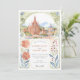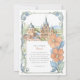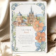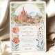 Convide seus hóspedes para uma celebração mágica com este convite encantador de casamento em aquarela, capturando o espírito vibrante de San Miguel de Allende, México. O trabalho de arte exibe lindamente a icônica Parroquia de San Miguel Arcángel, com suas incríveis espiras góticas cor-de-rosa e terracotta, flanqueadas por encantadoras construções ao estilo colonial em tons quentes de amarelo, laranja, terracota, e pínus moles, apresentando portas e varandas caracterizadas por arqueiros. Cactos verdes esmagados, árvores estilizadas com folhagem verde, lavanda e azul-esverdeada clara, e delicados arbustos verdes acrescentam à cena pitoresca. Os ramos de folhas pontiagudas, amarelo-ouro, estilizados enquadram a composição. Criado em um estilo aquoso romântico e suave, este convite é perfeito para um casamento de destino no México ou para casais que adoram cultura vibrante e encanto colonial pitoresco. A frente apresenta elegantemente seus detalhes de casamento, enquanto o lado inverso oferece "Os detalhes mais finos" para informações adicionais sobre convidados. A paleta de cores é uma mistura deliciosa de terractos quentes, pinks, amarelos ensolarados, laranjas, vários tons de verde (incluindo sábio e oliveira para cacos/arbustos, e verdes mais brilhantes para árvores), lavanda, verde-azul-claro, sotaques amarelo-ouro, e blues e cremes do céu mole.