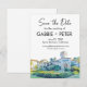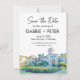 Este cartão de salvar a data apresenta um dos tribunais mais bonitos da América, em Santa Barbara, Califórnia. Construído no estilo Revival Colonial Espanhol, o Tribunal de Santa Barbara é um destino para tudo, desde casamentos íntimos até cerimônias de casamento completas nos Jardins Sunken. Todo o texto é editável para atender às suas necessidades personalizadas.