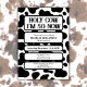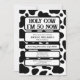 Economize dinheiro e papel; solicite um download digital. Sim! Convide convidados para uma celebração de marco com este convite de aniversário de impressão de vaca caprichoso. O design apresenta um padrão de cotovelo preto e branco com "Santa Vaca, tenho 50 anos agora" em uma fonte ousada no estilo ocidental no topo. Os detalhes da parte são exibidos em caixas de texto editáveis separadas para facilitar a personalização. O dorso repete o padrão divertido da vaca, fazer perfeito para cowboys, cowboys, ou qualquer um fazendo 50 fabulosos, ou qualquer outra idade! Obrigados por seu interesse — não se esqueça de dar a ele como se você amasse o design!