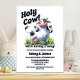 Celebre a chegada iminente do seu pequeno pacote de alegria com um convite engraçado para chás de fraldas de vaca. O texto personalizável permite que você adicione facilmente seu nome, data e hora da celebração e as informações de RSVP. Vários tipos de papel e estilos de canto estão disponíveis para seus convites exclusivos, juntamente com a opção de download.