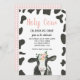 Santa Vaca! Vaca branca com impressão de vaca, convite de aniversário de gingham floral e rosa.