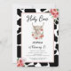 Você ouviu o Moos? Este convite de aniversário de vaca é editável para qualquer idade. Apresenta flores cor-de-água rosa e rosa-claro e cor-de-rosa-claro e uma borda de impressão de vaca. A parte de trás é um cor-de-rosa pincelado correspondente. O texto do roteiro o torna moderno e a vaca das terras altas a aquarelas o torna elegante e fresco.