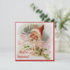 Convite de pérola quadrada com brilho e imagem vintage de São Nicolau entre azevinho e fitas cor-de-rosa. Borda vermelha. Verso com borda vermelha. Veja o envelope, caixa de favores, etiqueta de favores, rótulo, adesivo quadrado e papel de embrulho correspondentes. Veja toda a coleção de convites de Natal na seção INVITES | Convites & Cartões.