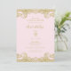 Convites Sapatilha Rosa e Renda Dourada Elegante Chá de Noi