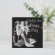 Convite de festa de aniversário de 21 anos para mulher com sapatos de salto alto preto e branco champagne.