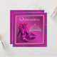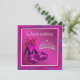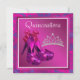 Sapatos elegantes de salto alto rosa e tiara fuchsia modelo de convite Quinceanera. Este lindo convite de festa de aniversário roxo e fuchsia é facilmente personalizado para o seu evento, bastando clicar no botão "Personalize!" para começar a adicionar os detalhes do evento, estilo de letra, tamanho e cor da letra e texto. Por favor, note que todos os adesivos, cartões e desenhos de convites que você encontrará no Zazzle são gráficos impressos sem joias, laços, relevos, ou peças ou partes adicionais.