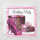 Sapatos femininos rosa choque com estampa de leopardo e salto alto e convites de aniversário rosa e preto. Caixa elegante de renda rosa e preta com rosas e pérolas e sapatos de salto alto com estampa de leopardo rosa. Este convite de festa de aniversário de zebra rosa funciona bem para qualquer aniversário de menina ou mulher ou evento. Personalize-o para sua festa ou evento simplesmente escolhendo o botão "Personalize!" para começar a adicionar os detalhes do seu evento, estilo de fonte, tamanho e cor da fonte e texto da frente e verso.
