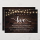 Cartão de Chá de panela de Caligrafia Moderna (Cheers to Love), em lanternas de madeira escura rusticadas, com design temática. Convide os convidados com este Cartão de Convite perfeito. Adicione os detalhes do seu chá de panela em texto correspondente.