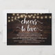Cartão de Chá de panela de Caligrafia Moderna (Cheers to Love), em lanternas de madeira escura rusticadas, com design temática. Convide os convidados com este Cartão de Convite perfeito. Adicione os detalhes do seu chá de panela em texto correspondente.