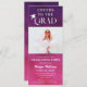 Animações ao Formando Trendy Modern Photo Pink Purple Convite de festas apresenta sua foto favorita de graduação com o texto branco "Saúde ao Formando" em um roteiro de caligrafia moderno, acentuado com um boné de formatura com suas informações de convite de festa de formatura personalizadas, abaixo, em um fundo cor-de-água rosa e violeta. Ao contrário, adicione seu código QR personalizado para obter fácil rsvp da família e dos amigos. Coloridos, modernos e únicos. Projetado pelo Evco Studio www.zazzle.com/store/evcostudio