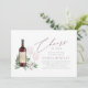 Planejar um tema de vinho ou chá de panela de vinho, ou acolher o grande evento em uma adega ou vinhedo? Convide seus convidados com nossos elegantes convites de chá de panela de provando de vinho, apresentando uma garrafa de vinho tinto burgundy e dois copos de vinho e adornada com folhas e folhagem de eucalipto de cor aquática verde. "Cheers to Love" aparece na letra de um roteiro de caligrafia. Para um toque final, personalize o rótulo da garrafa de vinho com as iniciais do casal. Perfeito para chás de panela em vinhas ou em vinhas.