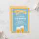 Cheers em letras de baseball em bolhas de guião em azul e ouro, com cervejas e listras de coordenação ao contrário. Personalize o texto neste design de diversão adicionando os anos, o nome e os detalhes da festa. Entre em contato com o comerciante se precisar de ajuda para personalizar este design.