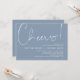 Anuncie sua alegria para sempre em estilo com o nosso moderno design de ensaio de casamento (Cheers!). É ideal para casais que decidiram celebrar a noite antes do seu grande dia. Com seu design sofisticado, mas lúdico, este convite certamente define o tom de um evento inesquecível. O cartão de convite apresenta design de script minimalista, adicionando um toque de elegância do eterno à sua celebração. Projetado por TeeshaDerrick