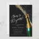 Convite perfeito para 80. Uma garrafa de champanhe aberta com bolhas de fuga cria um design festivo. O "Cheers to 80 anos" está escrito em uma escrita moderna e moderna. Os detalhes de aniversário seguem abaixo. O texto branco pop contra o fundo preto. Todo o texto pode ser editado para que você possa realmente artesanato uma experiência personalizada para seus convidados.