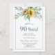 Alegria a 90 Anos de Aniversário de Girassol Este convite para flores de girassol é perfeito para sua celebração especial. Este design apresenta um fundo branco acentuado com um arranjo floral de aquarela e tipografia personalizada. Adicione suas informações para completar a aparência.