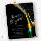 Convite perfeito para 90. Uma garrafa de champanhe aberta com bolhas de fuga cria um design festivo. O "Cheers to 90 anos" está escrito em uma escrita moderna e moderna. Os detalhes de aniversário seguem abaixo. O texto branco pop contra o fundo preto. Todo o texto pode ser editado para que você possa realmente artesanato uma experiência personalizada para seus convidados.