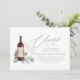 Planejar uma festa de noivado de vinho ou de provando de vinho, ou acolher o grande evento em uma adega ou vinhedo? Convide seus convidados com nossos elegantes convites para festas de noivado de provando de vinho, com uma garrafa de vinho tinto burgundy e dois copos de vinho e enfeitiçada com a cor aquática verde folhas de eucalipto e folhagem. "Cheers to Love" aparece na letra de um roteiro de caligrafia. Para um toque final, personalize o rótulo da garrafa de vinho com as iniciais do casal. Perfeito para comemorações de noivado em vinhas, vinhas ou vinhas.