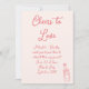 Whimsical Cheers to Love Festa de noivado Invitation in terracotta red and blush rosa, com uma garrafa de champanhe desenhada manualmente com arco e letra de escrita manual.
