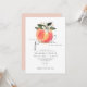Este convite para o chá de fraldas "Um pouco de pêssego está a caminho" apresenta uma cor d'água, florais brancos e uma letra manuscrita. É perfeito para seu chá de fraldas inspirado na fruta.