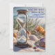 Coastal themed with sea glass, seashells and an old fashion hourglass. A fun, unique save the date card. Chage the fonts, colors, wording on the text to make it your own.