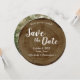 Introducing our Rustic Wedding Save the Date Photo dark Wood Grain Invitation—a blend of natural charm and romantic elegance, perfectly tailored to your rustic wedding theme. This unique round card captures the essence of wood grain, emulating the rustic disc slices often seen at beautiful and romantic weddings.