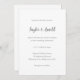 Convite de casamento moderno, com um design simples e mínimo com seus nomes em um roteiro escrito à mão e seus detalhes de evento em fontes serif.
