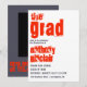 Cartão com fotos de convite para festa de formatura com escarlate e tipografia de cinza com um tema esportivo personalizável para suas especificidades de evento.