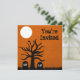 Chamada de Halloween do Assustador Escuro e Assustador, apresentando uma silhueta de uma árvore arrasada entre dois tombstones. Este convite de dois lados é perfeito para deixar seus amigos saberem se juntar a vocês por uma noite de diversão de Halloween! Fácil de personalizar, basta adicionar os detalhes do seu partido nos espaços fornecidos. Clique no botão "Personalizar" para encontrar opções para alterar fontes ou cores de texto.