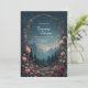 Invite your guests to a celebration of love amidst nature's grandeur with this breathtaking design. The artwork features a delicate, antique copper-tone archway entwined with lush climbing blooms in shades of magenta and blush, creating a romantic window to the wild. Through this floral gateway, a majestic vista unfolds, revealing jagged snow-capped peaks, a dense evergreen forest, and a wildflower-filled meadow under a twilight sky. The composition perfectly balances the intimacy of a garden with the awe-inspiring beauty of an alpine landscape. This enchanting illustration is a flawless choice for a destination wedding in the rockies, a rustic lakeside ceremony, or an outdoor spring celebration. You might also select this scenic aesthetic for a twilight engagement party, a sophisticated sweet sixteen with a fantasy theme, or a milestone anniversary dinner. This picturesque landscape border is also perfectly suitable for boutique travel agency posters, wilderness glamping retreat brochures, or fantasy book launch events.
