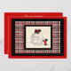 Scottie dogs - Scottish Terriers, on top of a big snowball with Happy New Year on it. Scottie Dog New Years open house invitation. Cute plaid border surrounds the image.