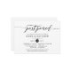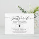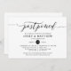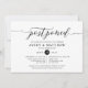 Quando tiver de adiar o seu casamento, informe os seus convidados com este convite de na moda com espaço para todos os detalhes (frente e verso). Apresentando um roteiro de caligrafia na moda e layout elegante. Todas as cores são editáveis.
